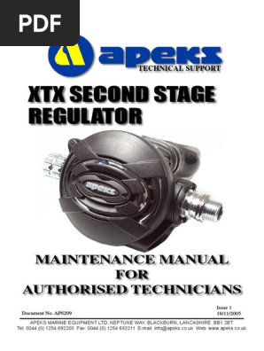 | Product: Apeks Maintanance Manual Xtx Second Stage Regulator Issue1 Pdf Pdf Valve Equipment |